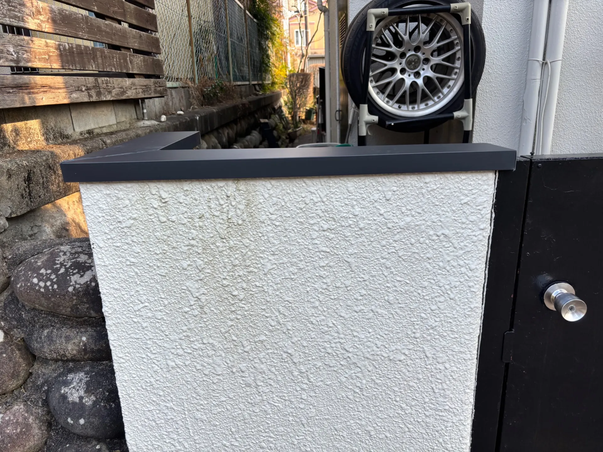 アールになった塀もありかなり難しい仕事でしたが綺麗におさまりました。