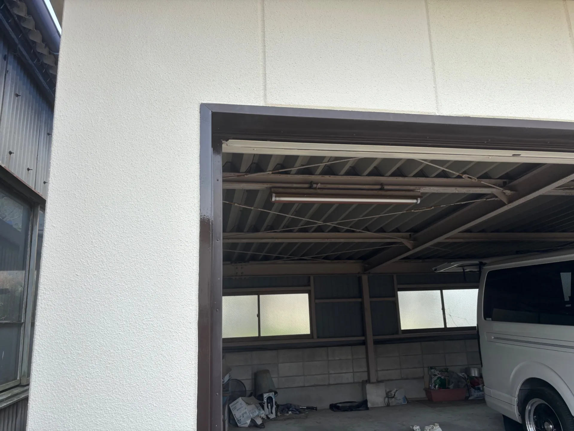 車庫に車をぶつけてしまったみたいで壁を1枚とシャッター枠を交換したそうです。