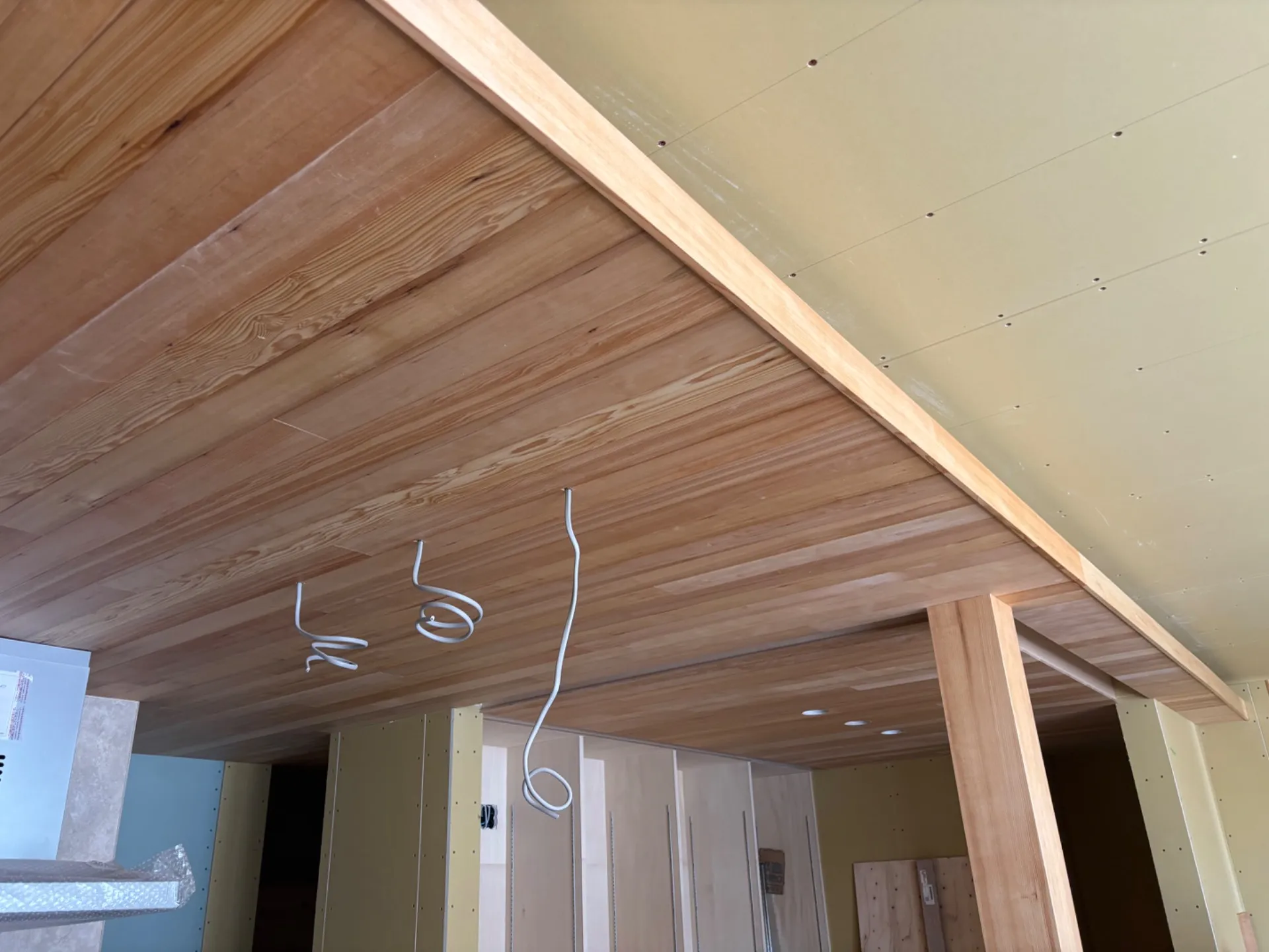 軒天レッドシダークリヤーにアイカのジョリパット仕上げです。