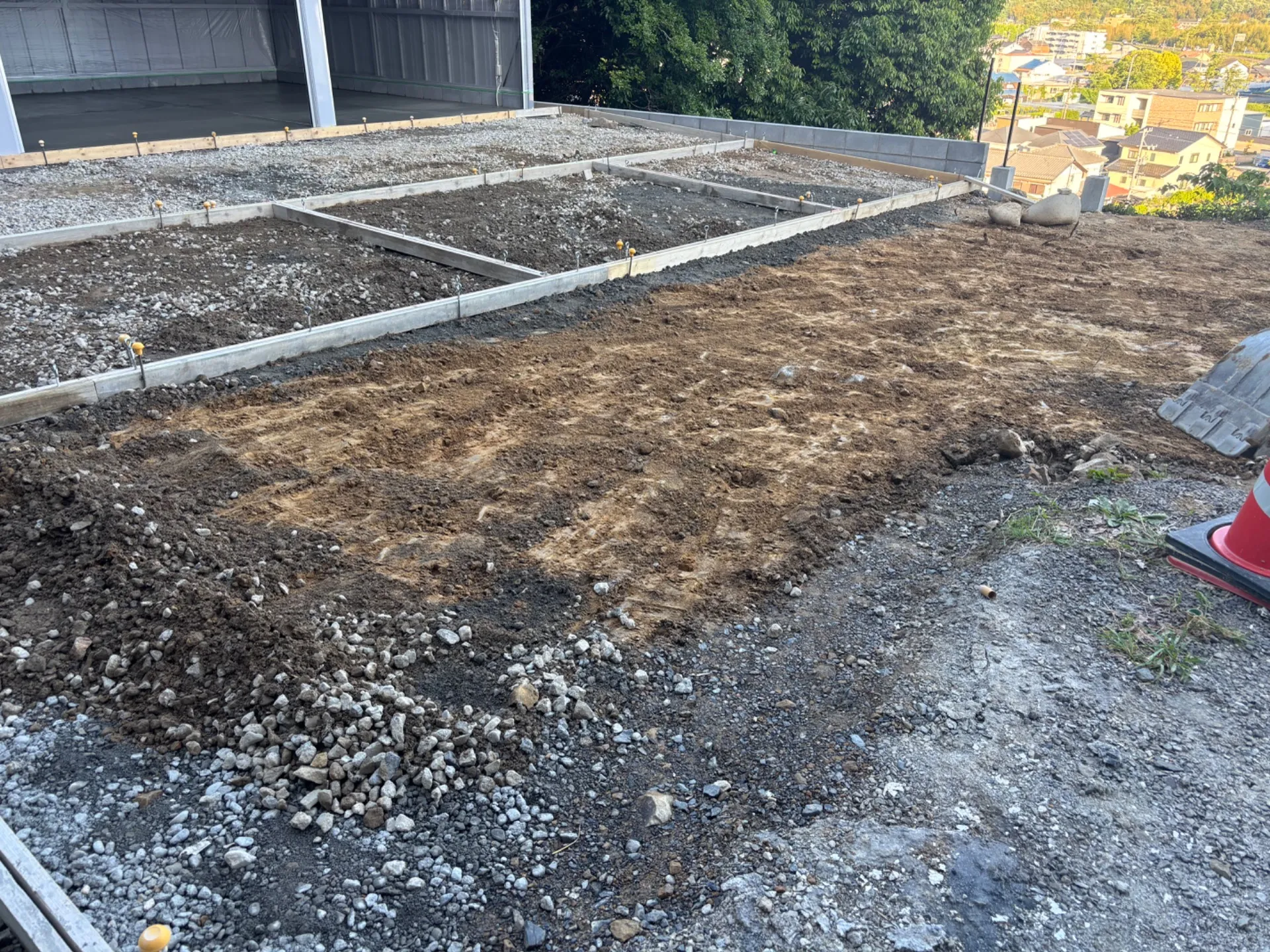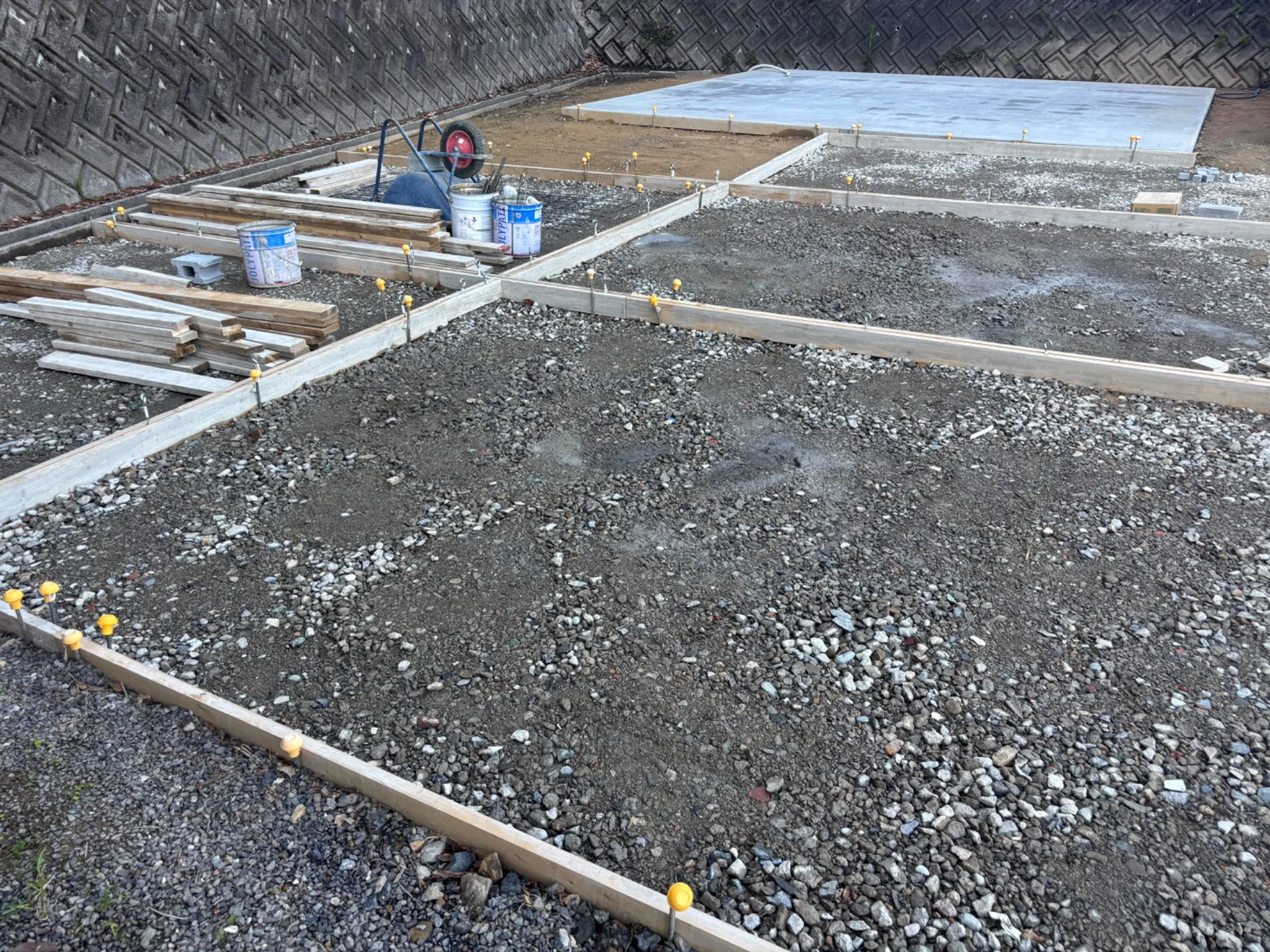 駐車場も全てコンクリートにしますので型枠まで組んでますがいっぺんに打てないので徐々にやっていきます。
