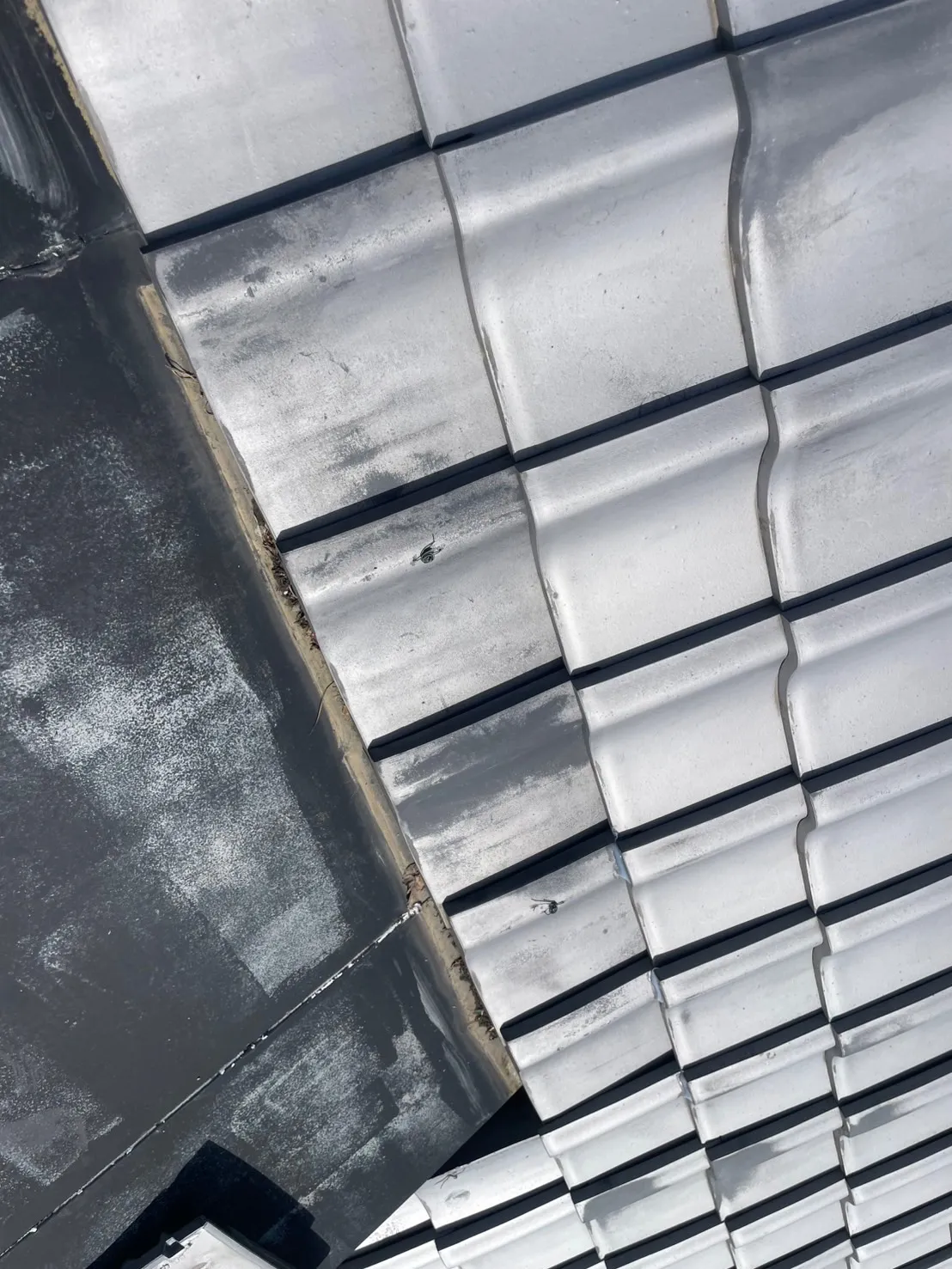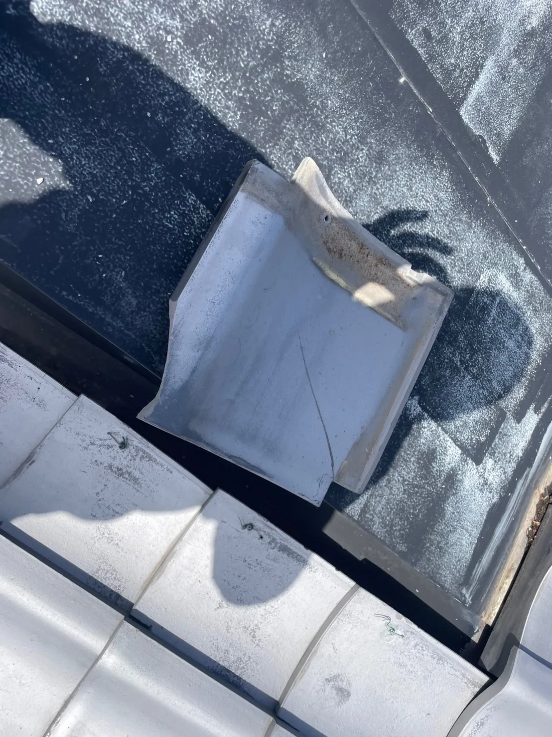 すぐに瓦をとりにいき2枚交換しました。他にもズレてる瓦が何ヶ所もありましたので差込してなおしてコーキングでとめました。
