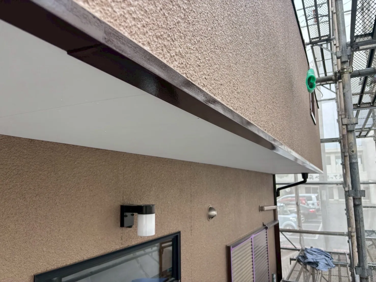 外壁塗装が終わり付帯部の上塗り作業に入りました。
