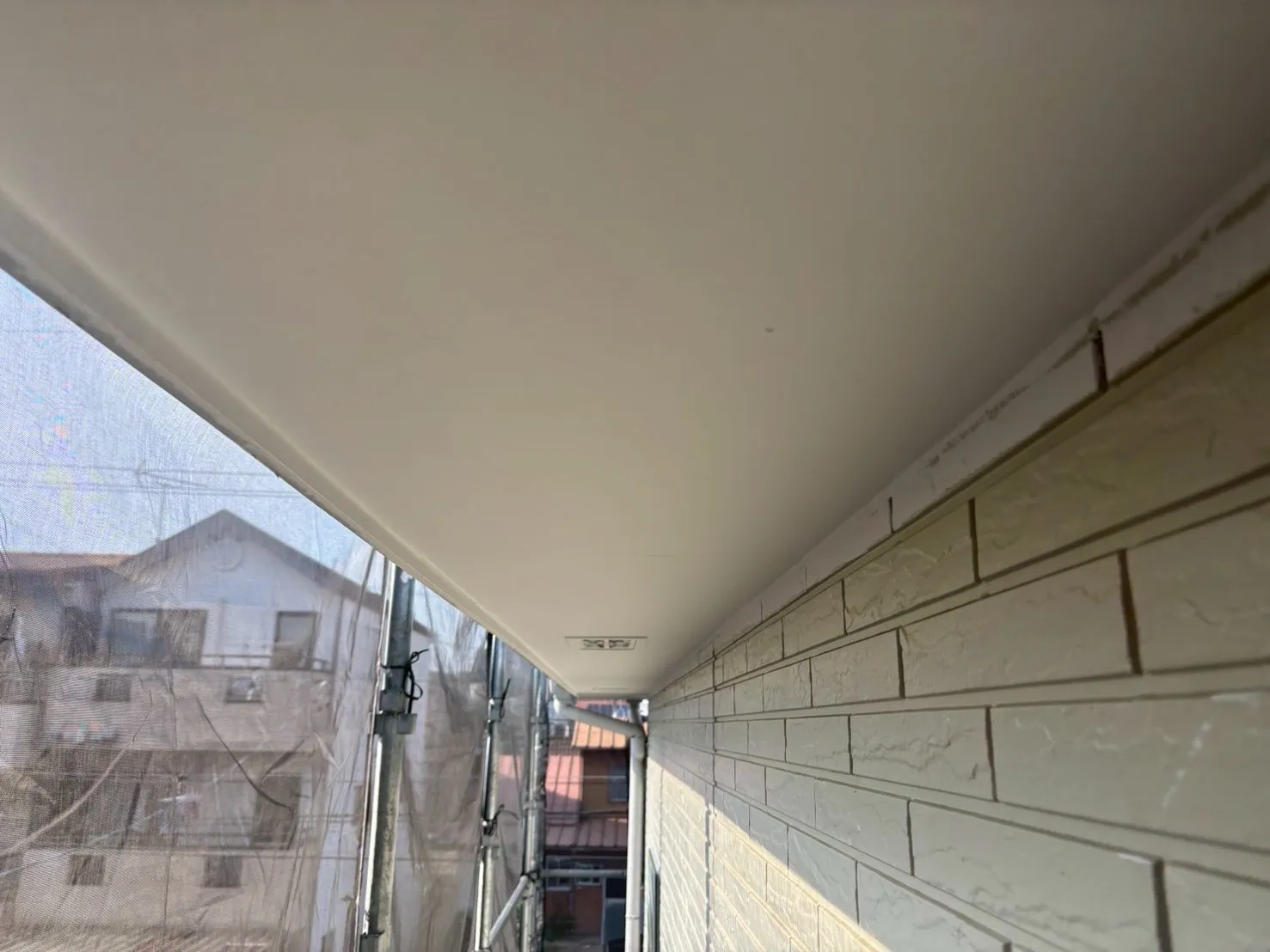 軒天は水性ケンエース防カビ塗料を塗装しました。N-90カラー