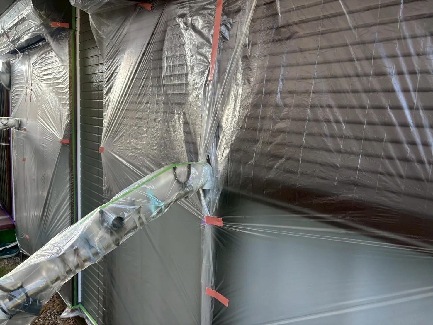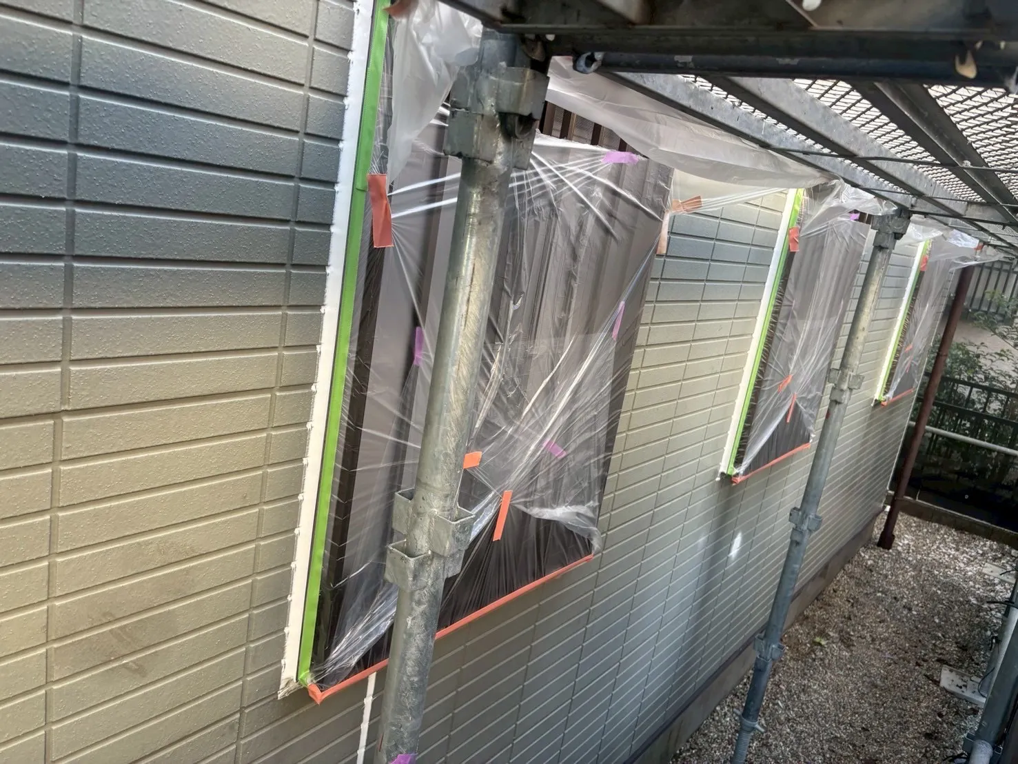 外壁の養生作業です。