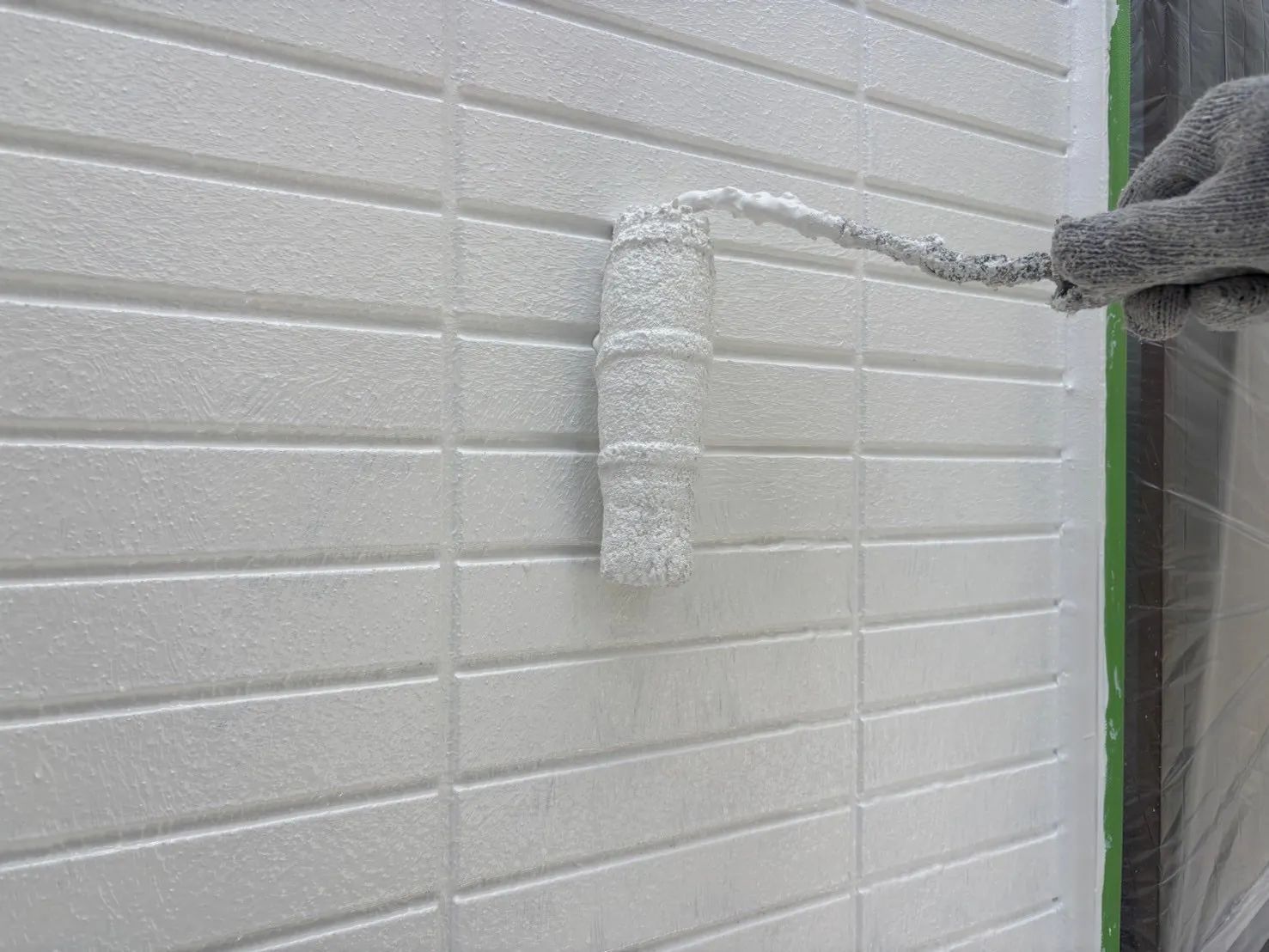 岐阜市にて外壁塗装ラジカル塗料!中塗り施工完了上塗り塗装に入ります。