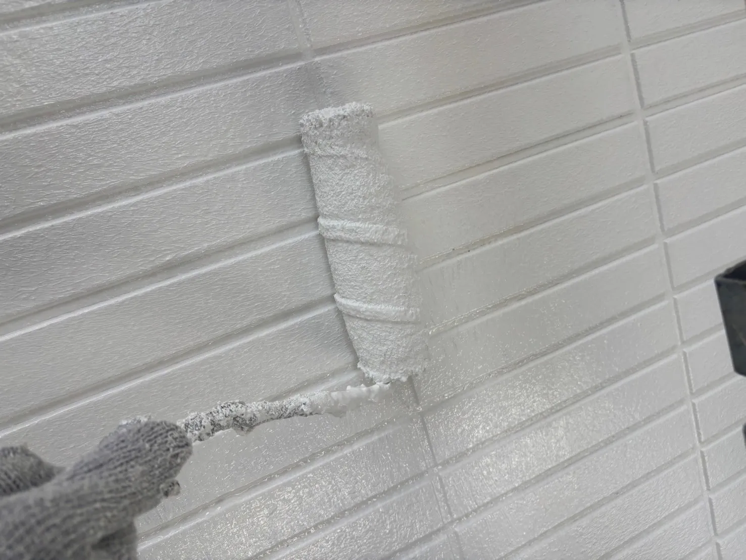 岐阜市にた外壁塗装下塗りが完工して、中塗り施工に入りました。