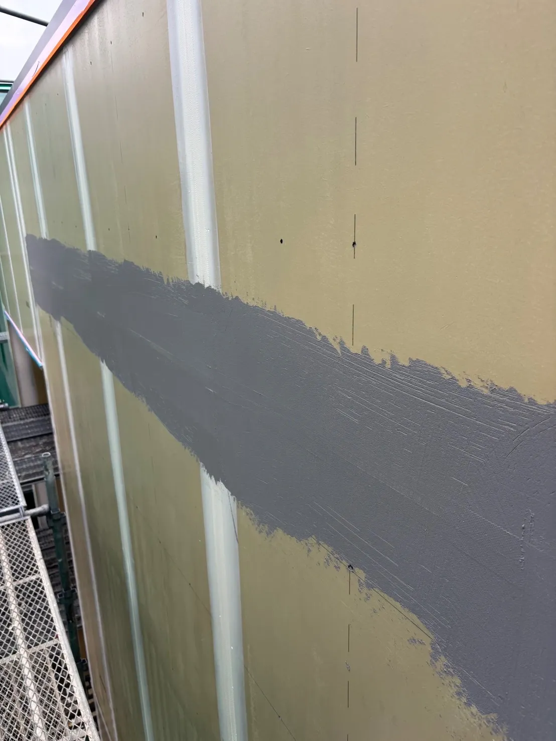 岐阜市日野にて外壁塗装大壁工法ジョリパットです。