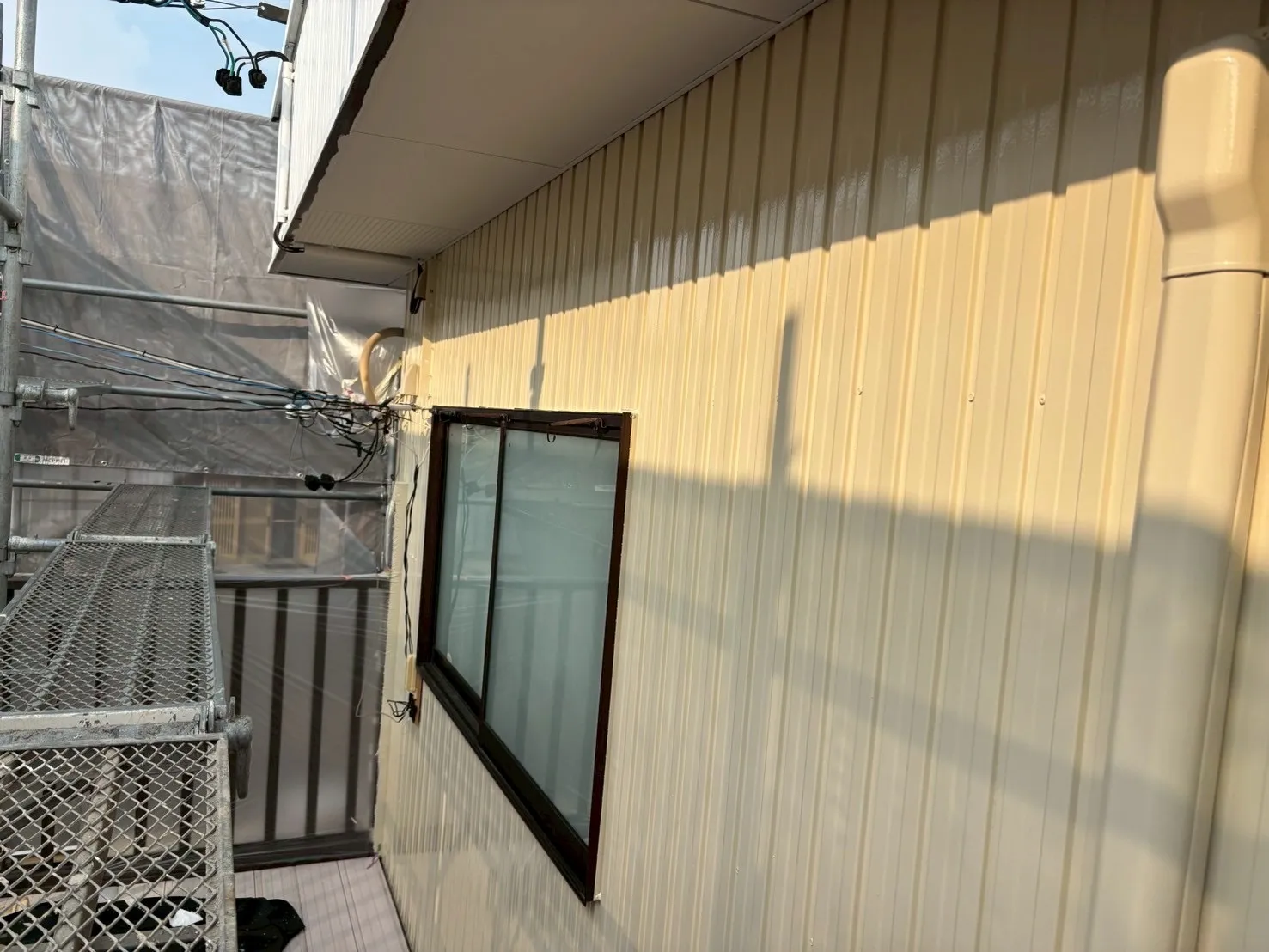 岐阜外壁塗装トタン壁上塗り施工完了!付帯部の塗装に入ります。