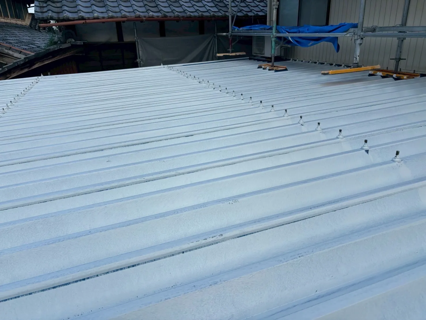 明日は屋根の中塗りと上塗り作業になります。