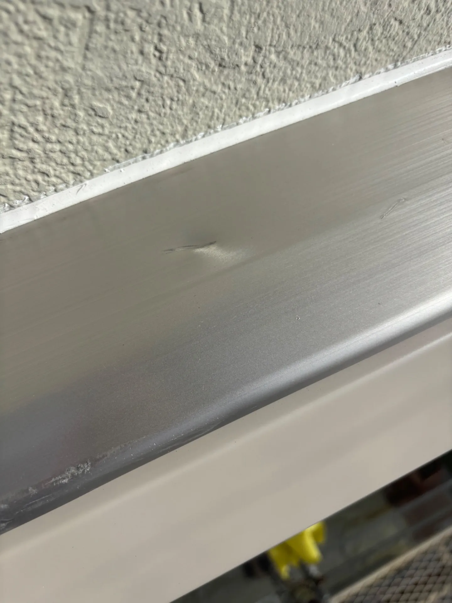 サッシに物があたり傷がついてしまったのを治して欲しいとのご依頼です。