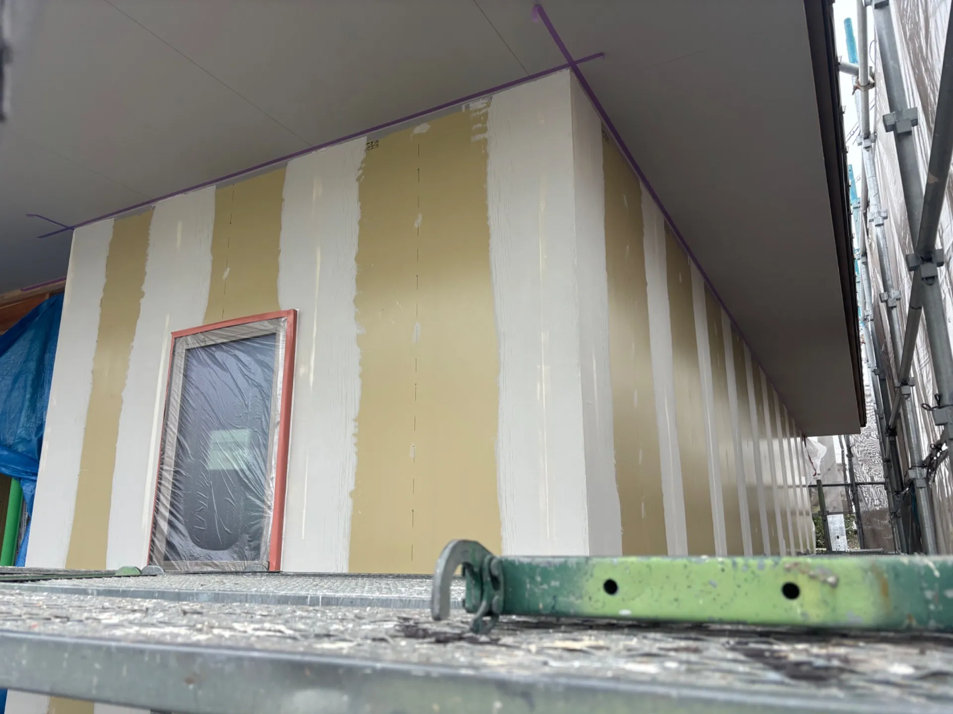 新築戸建ての大壁工法ジョリパット仕上げの下地作りです。