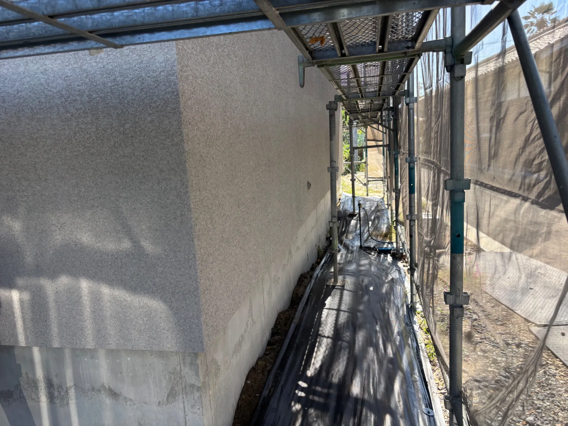 下地は大壁工法で仕上げはアイカ工業さんのジョリパット、ミックスサンド仕上げです。