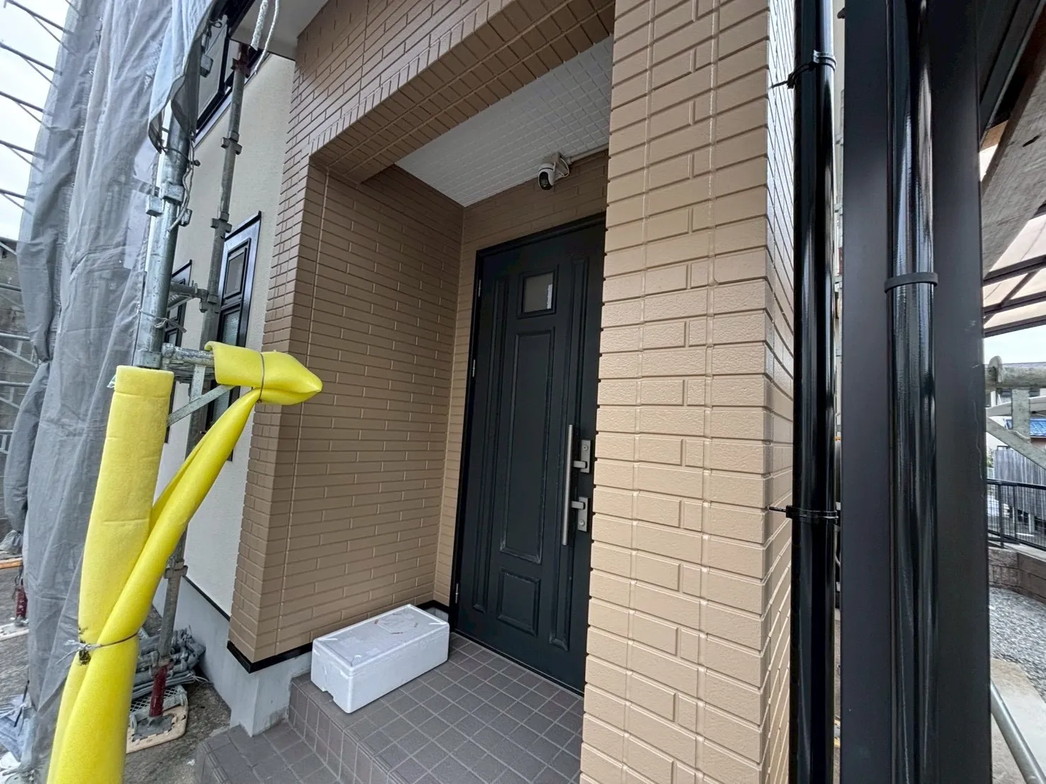 足場、コーキング、塗装工事まで2週間くらいで終わりました。