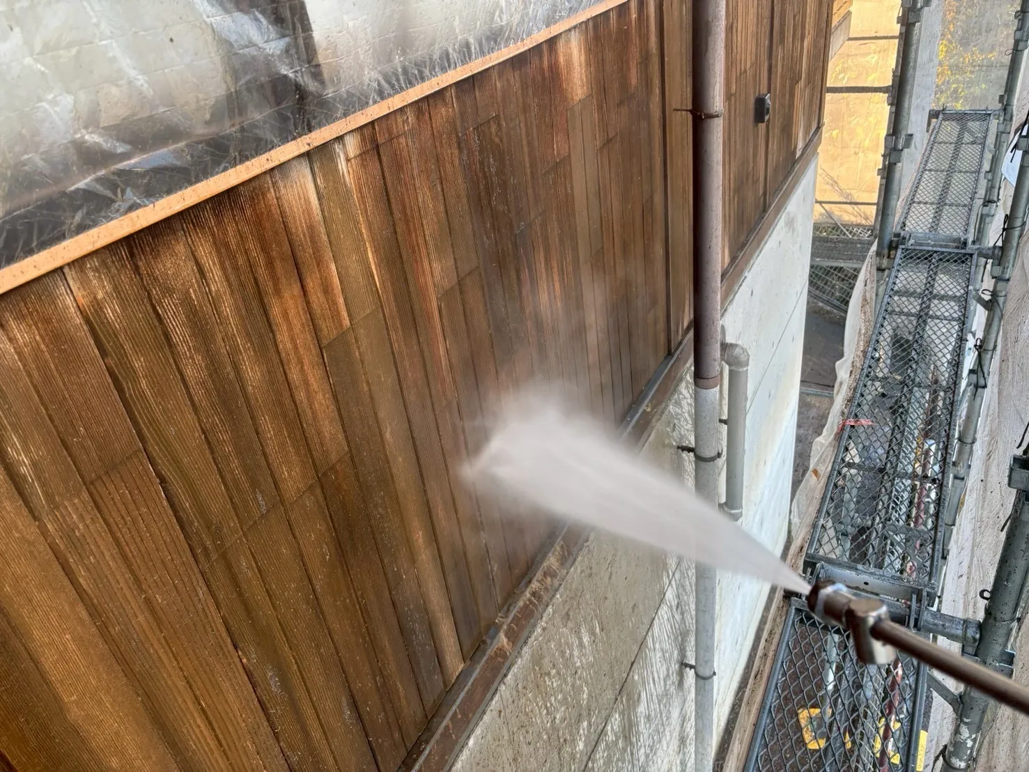 今日から岐阜市日野にて木部塗装がスタートしました。