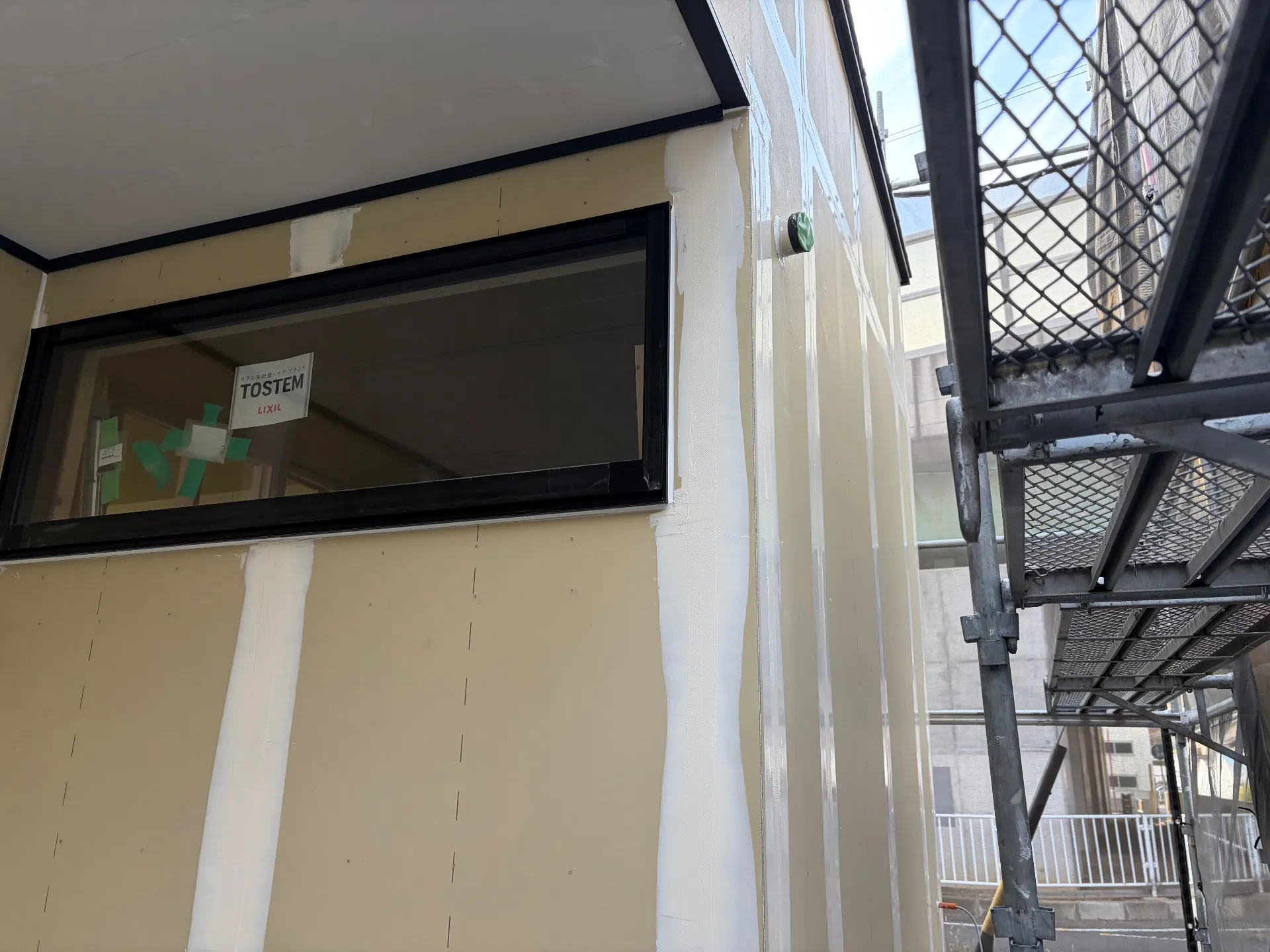 目地の中にしっかりとコーキングを打ち込んで専用メッシュを貼り付けて仕上げをします!