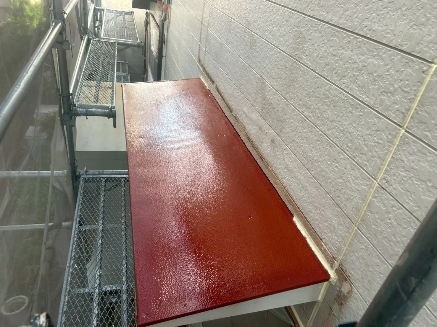 鉄部などの金属部分の腐食(錆)を防ぎ、建物の寿命を延ばすための重要な下地処理です。水や酸素を遮断する特殊な塗料で、錆の発生・進行を抑制し、長期間の美観の維持と建物の強度低下を防ぎます。