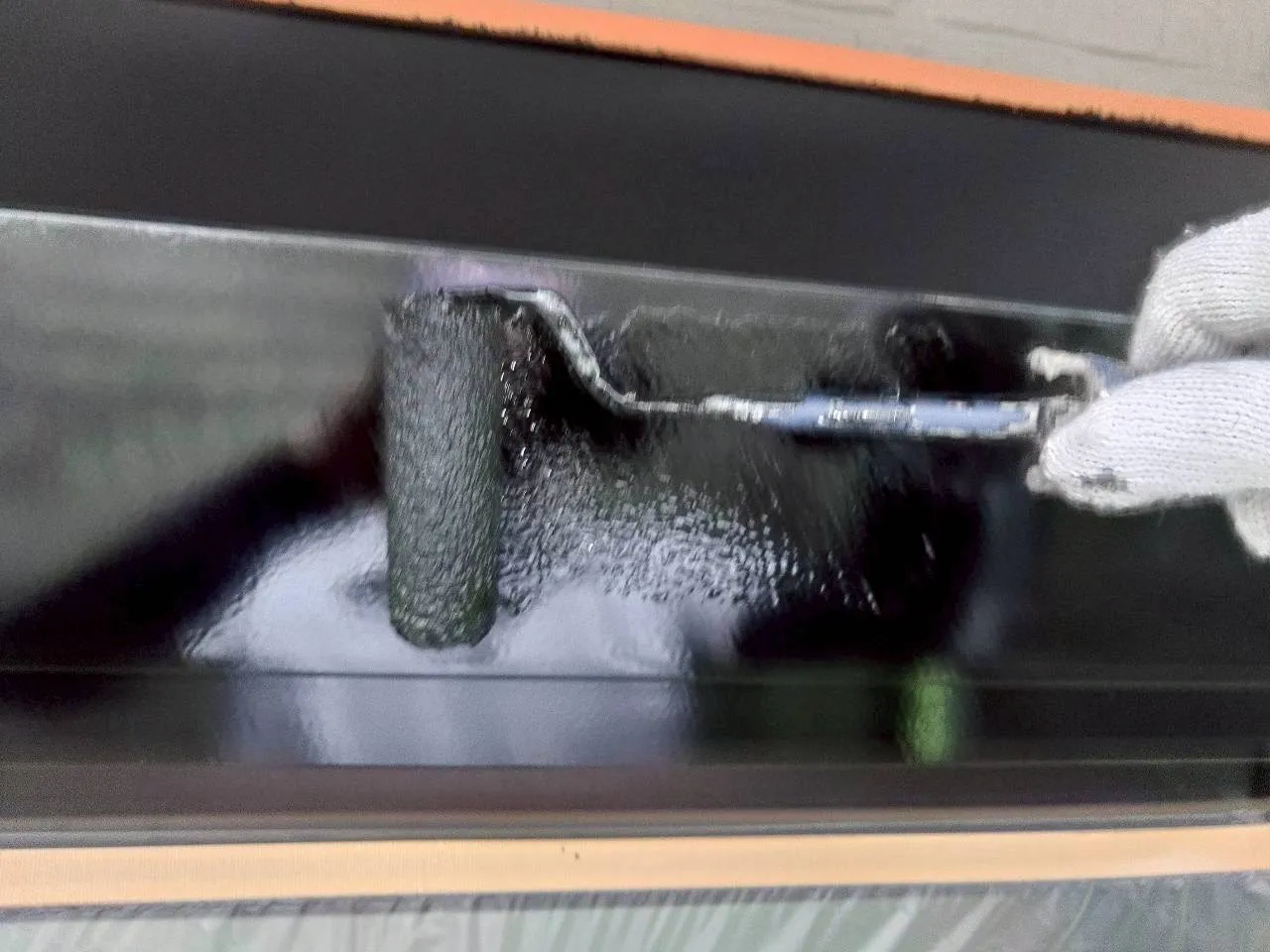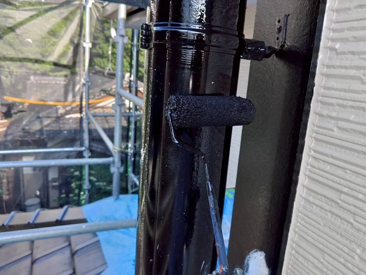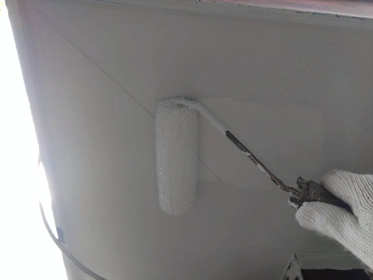 軒天は屋根の裏側にあたり、直接雨は当たりませんが、湿気が溜まりやすくカビやクモの巣が発生しやすい箇所です。Plus-Aでは、透湿性のある専用塗料をローラーで重ね塗りし、建物の通気性を確保しながら明るい美観を蘇らせます。また、雨どい、破風(はふ)、水切りなどの付帯部には、高耐久な「ナドシリコン」を採用。金属や塩ビ素材など、それぞれの材質に合わせた適切な下地処理を施した上で、ローラーで厚膜を形成します。細かなパーツの一つひとつに光沢が戻ることで、住まい全体の印象がグッと引き締まり、新築時のような輝きを取り戻します。