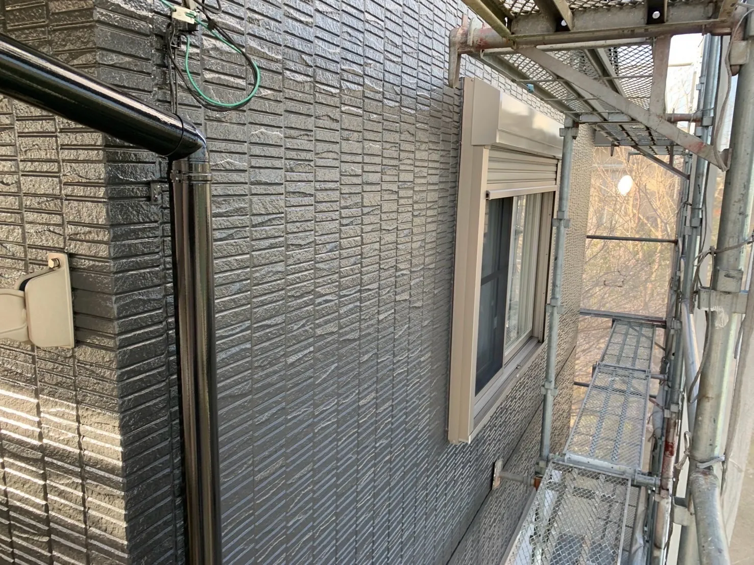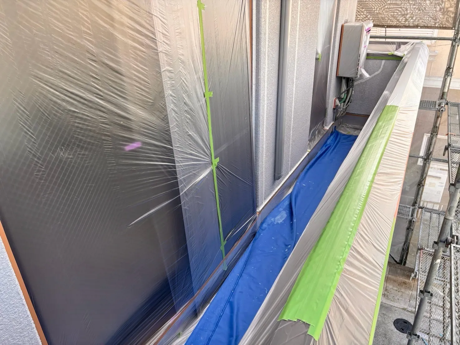 お疲れ様です。岐阜市長良にて外壁塗装スタートです。高圧洗浄とコーキング打ち増し工事が完工して、3日間の乾燥が終わりました!今日から塗装工事です。まずは養生と錆止め塗装です!明日から軒天塗装と…